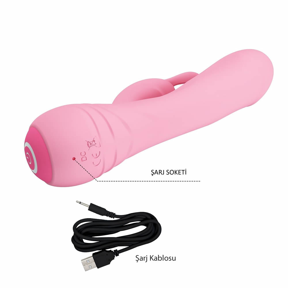 %100 Su geçirmez, Uç kısımda ve klitoral uyarıcı kısımda 12 farklı titreşim ritmine sahip, USB Şarj Girişli Çift Motorlu Esnek Tavşan Vibratör.