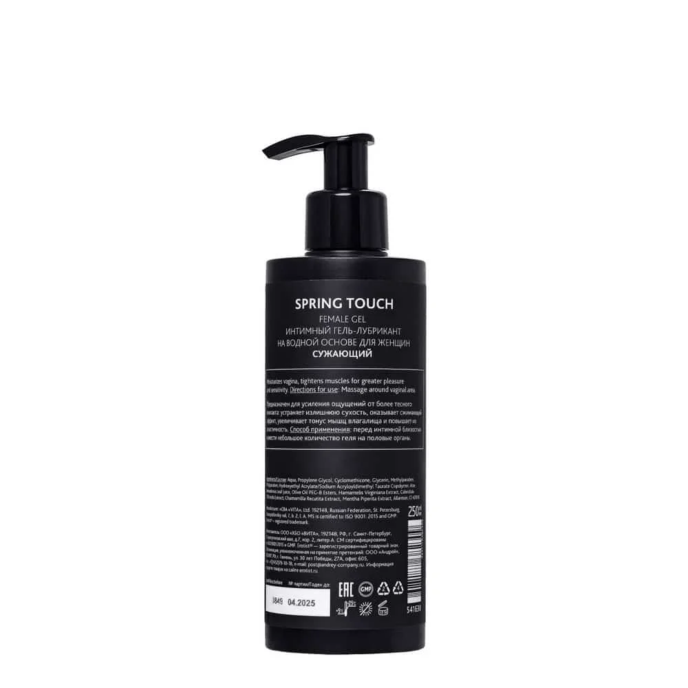 Su bazlı Spring Touch vajina daraltıcı bu jel, her gün bir partnerle olan yakınlığın, baharın öpücüğüne benzer bir hassasiyetle memnun olmasını sağlamak için üretilmiştir.
