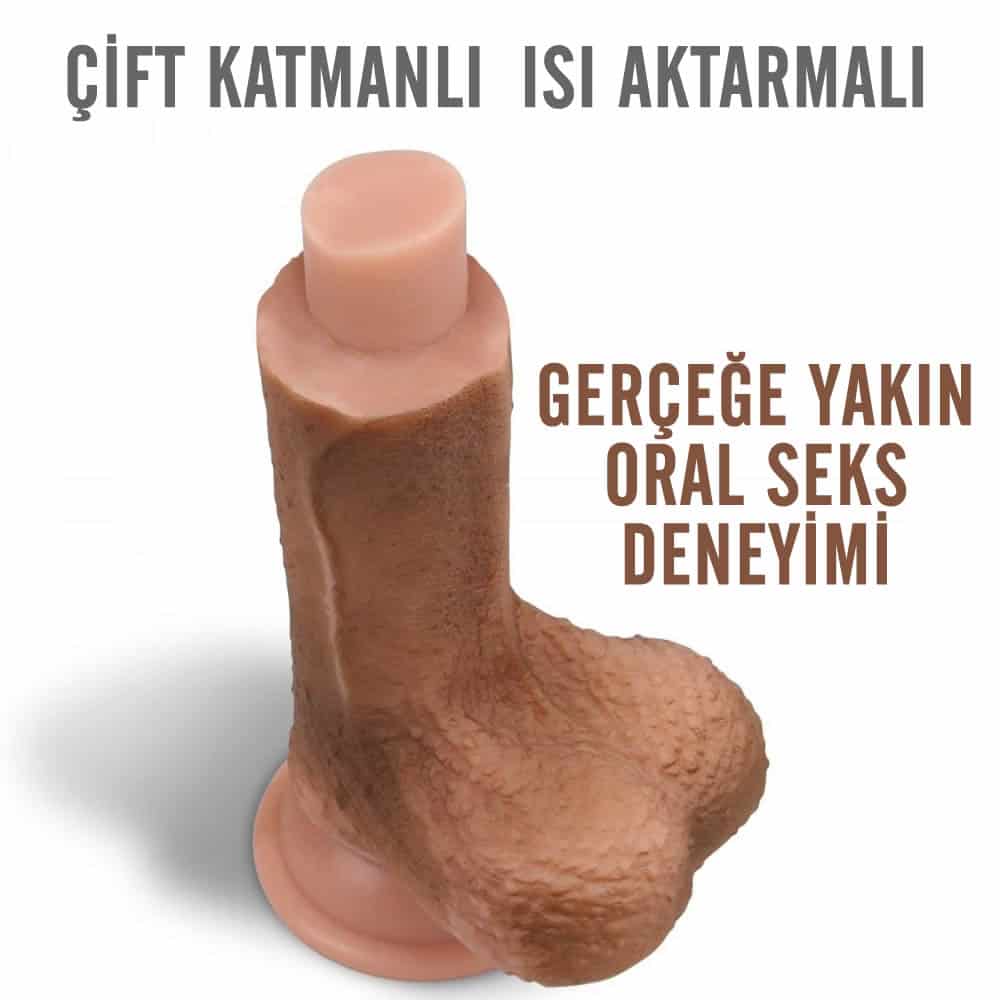 Hissedilebilir kalın damarlı yapıda, Cilt dostu malzemeden üretilmiş Testisli Belden Bağlamalı 19 cm Dildo Penis