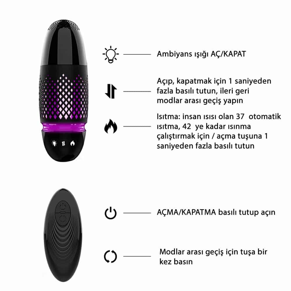 Vücut sıcaklığını otomatik ayarlayan ısıtma özelliği, 7 (3 cm ileri geri gidip gelme) İleri geri hız ve 7 Farklı Titreşim Moduna Sahiptir.