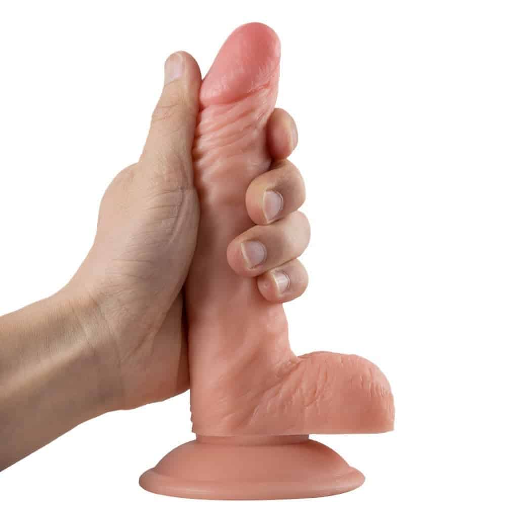 Gerçeğe yakın, güçlü vantuzu sayesinde pürüzsüz yüzeylere sabitlenebilir Vantuzlu 18 cm Silikon Dildo Penis